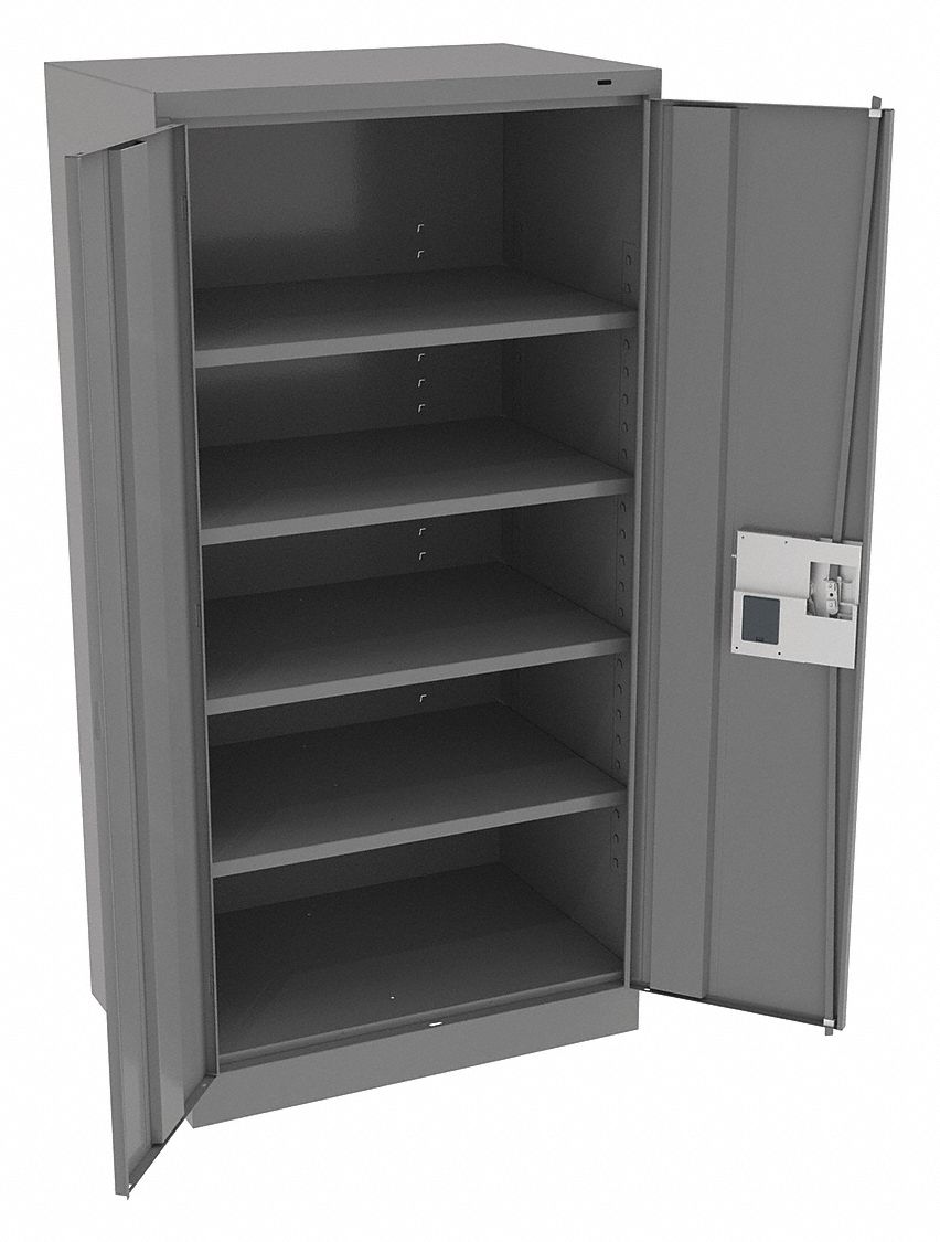 Tennsco s standard storage cabinets offer a quality construction three point door locking mechanism raised base and built in shelf support tabs.